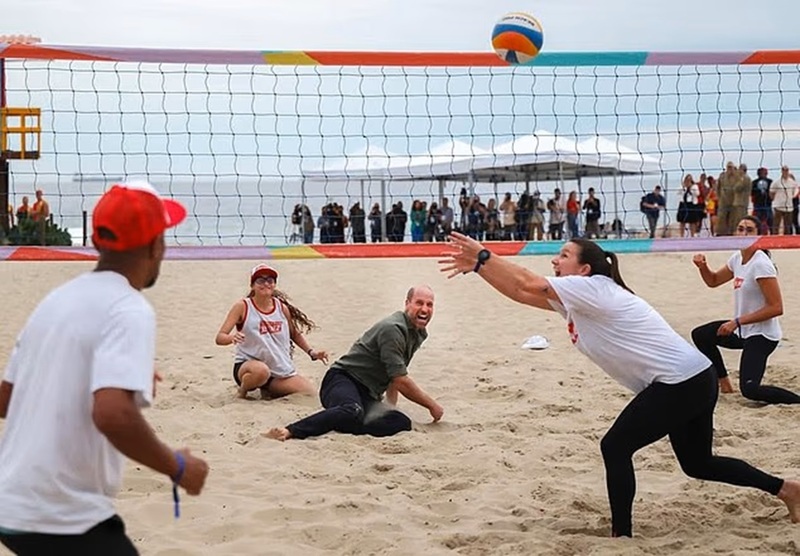Ноябрь взрывает энергией: Уильям на пляже Копакабана в Рио играет в волейбол перед Earthshot Prize — босиком, в песке, полным задора.