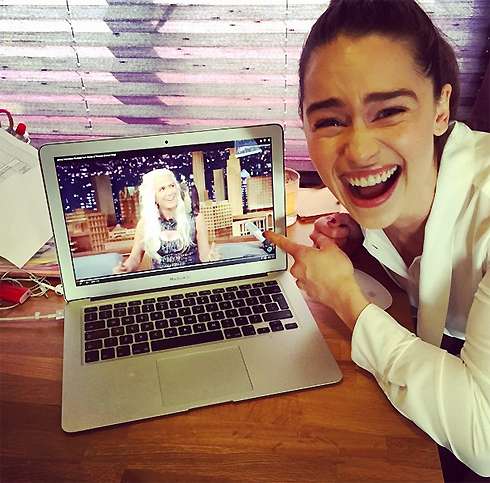 Эмилия: «Сейчас-то я уже привыкла то там, то сям мелькать полуобнаженной перед камерами. А вот первый сезон дался мне с трудом. Когда мы снимали завершающий эпизод, где я выхожу из пепелища полностью нагой, с драконами на руках, мой коллега актер Йен Глен очень смешно отреагировал на меня голую. По сценарию, он должен был произнести что-то вроде: „О, обнаженная госпожа“, — но, поскольку камеры снимали далеко и мимику было не разглядеть, он сказал: „М-м-м, неплохая грудь. Мне нравится!“. Я не могла остановиться и хохотала как сумасшедшая, а потом скромно попросила его перестать комментировать мои достоинства».