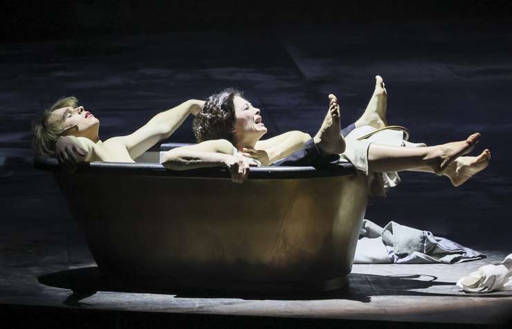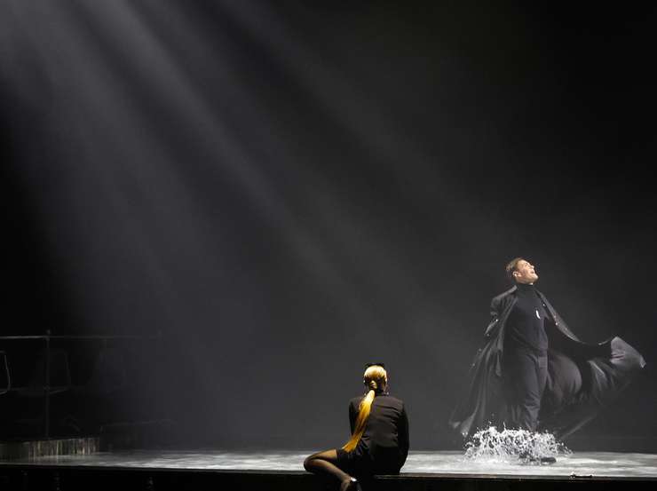 - Всем вместе. Здесь очень сложная декорация — мы играем в воде. Я не знаю, каким образом режиссер постановки Галина Полющук уговорила Владимира Кехмана, нашего директора, чтобы он пошел на такое во МХАТе имени Горького. Знаете, получился такой огромный бассейн. И это невероятно красиво, конечно, вода сама по себе играет, когда еще со светом, декорация потрясающая… Это что-то невероятное. Такое может позволить себе только репертуарный театр — с богатым светом, звуком и конечно, с огромной самоотдачей актеров. Каждый спектакль по-настоящему, все мокрые реально. Это обязательно надо видеть, правда.