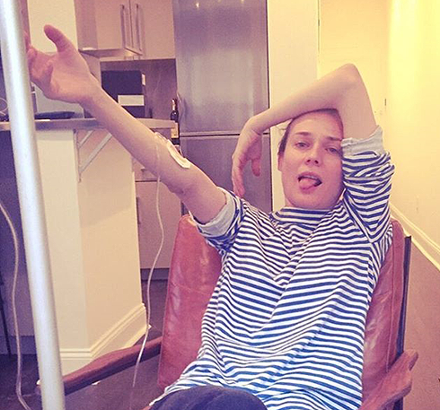 Грипп сразил Дайан Крюгер накануне Нового года. За несколько дней до праздника звезда фильмов «Троя» и «Бесславные ублюдки» призналась в соцсети, что она заболела, и в шутку попросила кого-нибудь приготовить ей куриный суп с лапшой. К новогодней ночи актриса так и не пришла в себя. И вместо праздничного стола с шампанским Дайан получила капельницу с лекарством и витаминами. «Неплохой способ начинать Новый год. Ха-ха», — подписала опубликованный в «Инстаграме» снимок Крюгер. Впрочем, к 3 января Дайан поправилась. «Кажется, я ожила. Фуф!» — сообщила кинозвезда своим поклонникам.