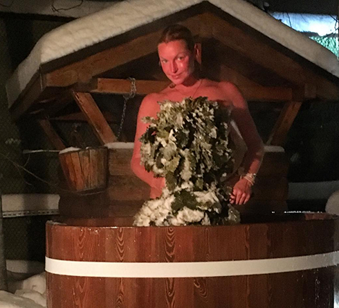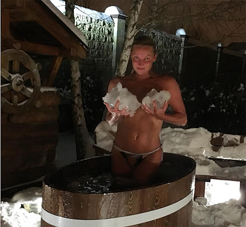 После парной Анастасия залезла в ледяную купель и, конечно, запечатлела свой смелый поступок. Что интересно, в качестве верхней части купальника Анастасия использовала не только обледеневший веник, но и настоящие глыбы льда. «С легким паром. Мне не холодно? А вам?..» (здесь и далее орфография и пунктуация авторов сохранены, — прим. WomanHit.ru), — подписала Волочкова снимки.