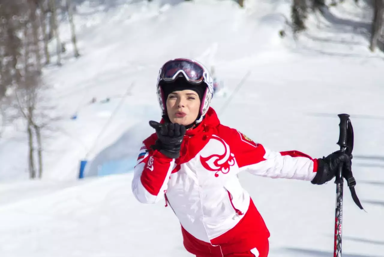 Актриса Анна Пескова осваивает горные лыжи на сочинском курорте