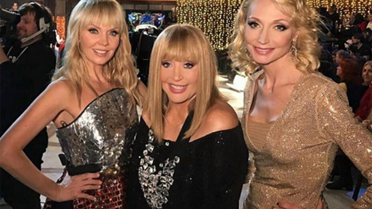 «Три блондинки #аллапугачева@orbakaite_k #кристинаорбакайте на съёмках новогодней программы „Максим Максим“» (здесь и далее орфография и пунктуация авторов сохранены, — прим. WomanHit.ru), — подписала фото Валерия.