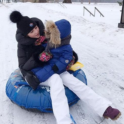 Звезда сериалов «Барвиха» и «Маргоша» часто выкладывает фотографии, сделанные вместе с сыном, Мирославом. Во время каникул они с удовольствием катаются вместе на «ватрушке».
