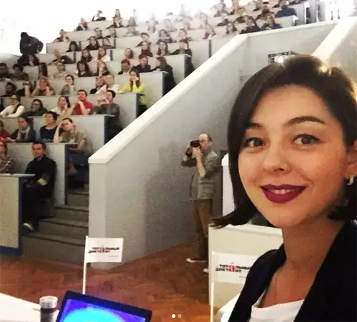 — Мне очень понравилось быть частью Тотального диктанта. Дебют у меня состоялся в том году, и тем приятнее, что пригласили еще раз. Правда, конечно, немного смущает официальное название «диктатор» Тотального диктанта и наверняка, оно пугает тех, кто приходит писать впервые. Я знаю, что этот диктант уже пишут по всей России, в Эстонии, Германии и других странах. Могу сказать, что — я стопроцентный гуманитарий, и с русским языком никогда больших проблем не было. Списывала только математику. Ещё физику. Ну, и химию. Иногда физкультуру. Я даже думала сама написать диктант, но вот уже второй год нахожусь по другую сторону кафедры. Наверняка, сделала бы несколько ошибок. Но не факт, что и авторы текстов для Тотального диктанта писали подобные диктанты абсолютно правильно! Хотя писателей приглашают каждый раз, конечно, с очень хорошим языком и красивым слогом. За свою жизнь я написала немало диктантов, как и все, кто учился в российских школах. Обычно оценки были неплохие.