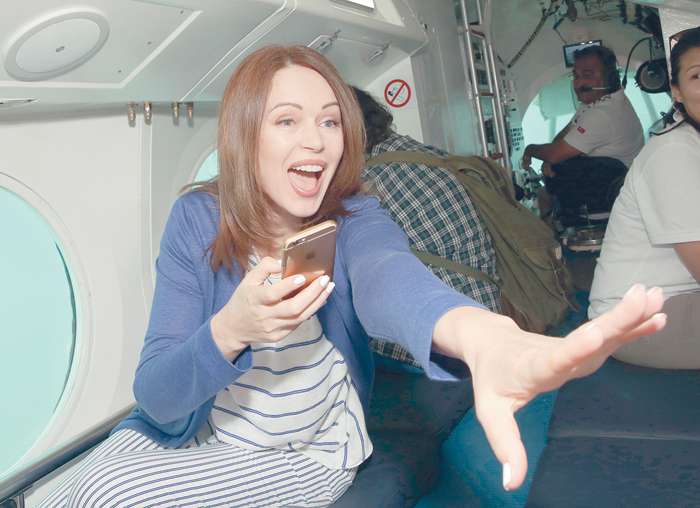 При погружении на дно в настоящей подводной лодке Ирина Безрукова не запаниковала, а наоборот, проявила живейший интерес к флоре и фауне Средиземного моря.
