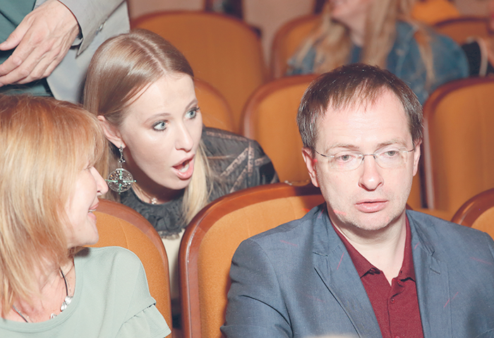 На премьеру пришел министр культуры Владимир Мединский. Вскоре свое место, аккурат позади него, заняла Ксения Собчак и немедленно вступила с министром в диалог. Неизвестно, о чем попыталась поговорить Ксения, но попытка явно не удалась. Мединский профессионально закончил разговор и даже умудрился чем-то Ксению удивить.