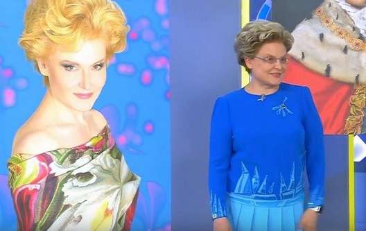 В эфире ведущая программы Елена Малышева расспросила ее о секретах мастерства и отличного зрения. «Я хожу к доктору, и он поддерживает меня», — призналась фотограф. Также на экране студии были продемонстрированы некоторые ее работы, в том числе и портрет Малышевой. В кадре 57-летняя телезвезда предстала в ярком платье с цветочным принтом и открытыми плечами. «Мятежная, сексуальная красавица. Господи, ну почему я хожу в очках?» — прокомментировала она снимок.