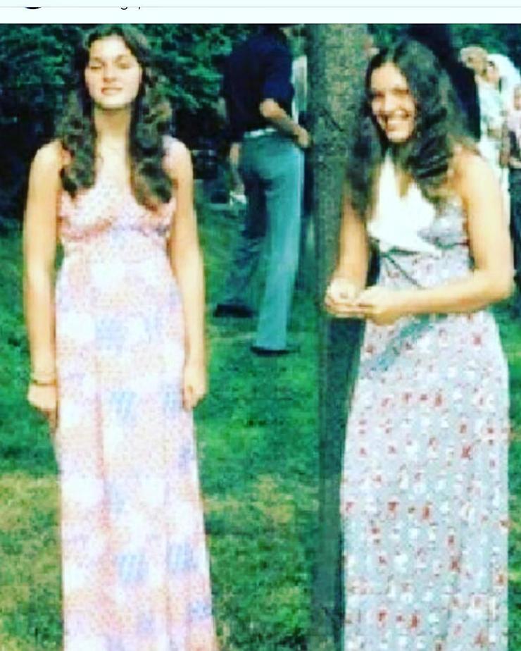 Эпатажная суперзвезда ошеломила своих поклонников публикацией архивной фотографии, где она вместе с сестрой Паулой запечатлена перед выпускным балом. Мадонна призналась, что у них не было возможности покупать платья в дорогих бутиках, поэтому свои наряды они пошили сами из ткани в цветочек. «Обратите внимание: ни разрезов, ни голых коленей! Папа Чикконе был очень строг», — вспомнила знаменитость.