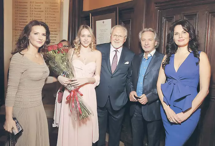 В этот вечер поздравить Павла Гусева пришли около ста человек. На фото: Павел Николаевич с дочерью Ксенией, певицей Ниной Шацкой, главой «Русской медиагруппы» Владимиром Киселевым и его супругой, певицей и актрисой Еленой Север.