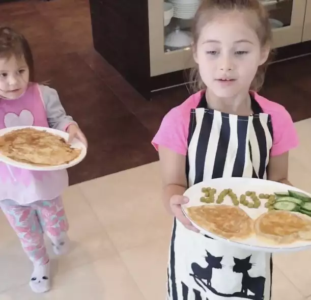 Пока в семье не появились двое младших детей, Оксана часто готовила вместе с Ариелой и Леей — старшей и средней дочерьми. «Спасибо моим дочуркам Лее и Ариеле за превосходный завтрак. Блюда были очень вкусными!» — написала Оксана под видео, где девочки несут папе завтрак в подарок на 23 февраля.