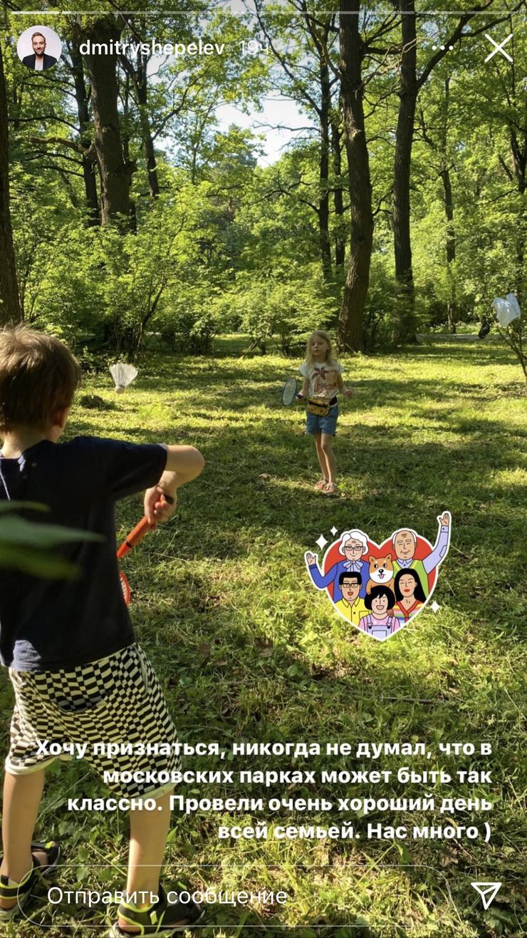 Телеведущий Дмитрий Шепелев поделился со своими подписчиками кадрами семейной прогулки в одном из столичных парков. Знаменитость показал в своем личном аккаунте в Instagram, как старшие дети Платон и Лада играют в бадминтон. «Хочу признаться, никогда не думал, что в московских парках может быть так классно. Провели очень хороший день всей семьей. Нас много» (орфография и пунктуация автора сохранены, — прим. WomanHit.ru), — заявил ведущий.