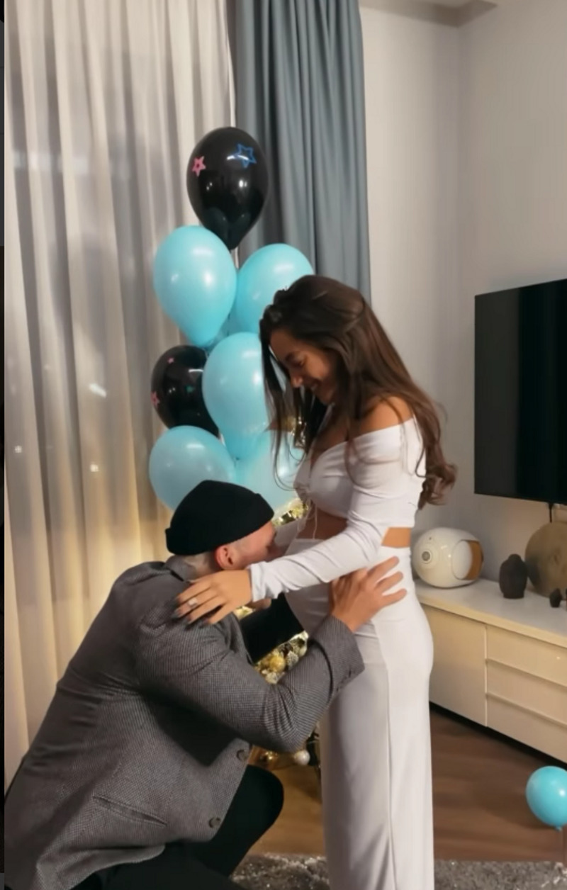 Влюбленные до последнего момента не знали пол ребенка, решив для этого устроить гендер-пати. Для этого они сняли кафе, украсив его шариками нейтрального цвета. В момент X они лопнули черный шар, из которого посылись конфетти и шарики размером поменьше голубых оттенков.