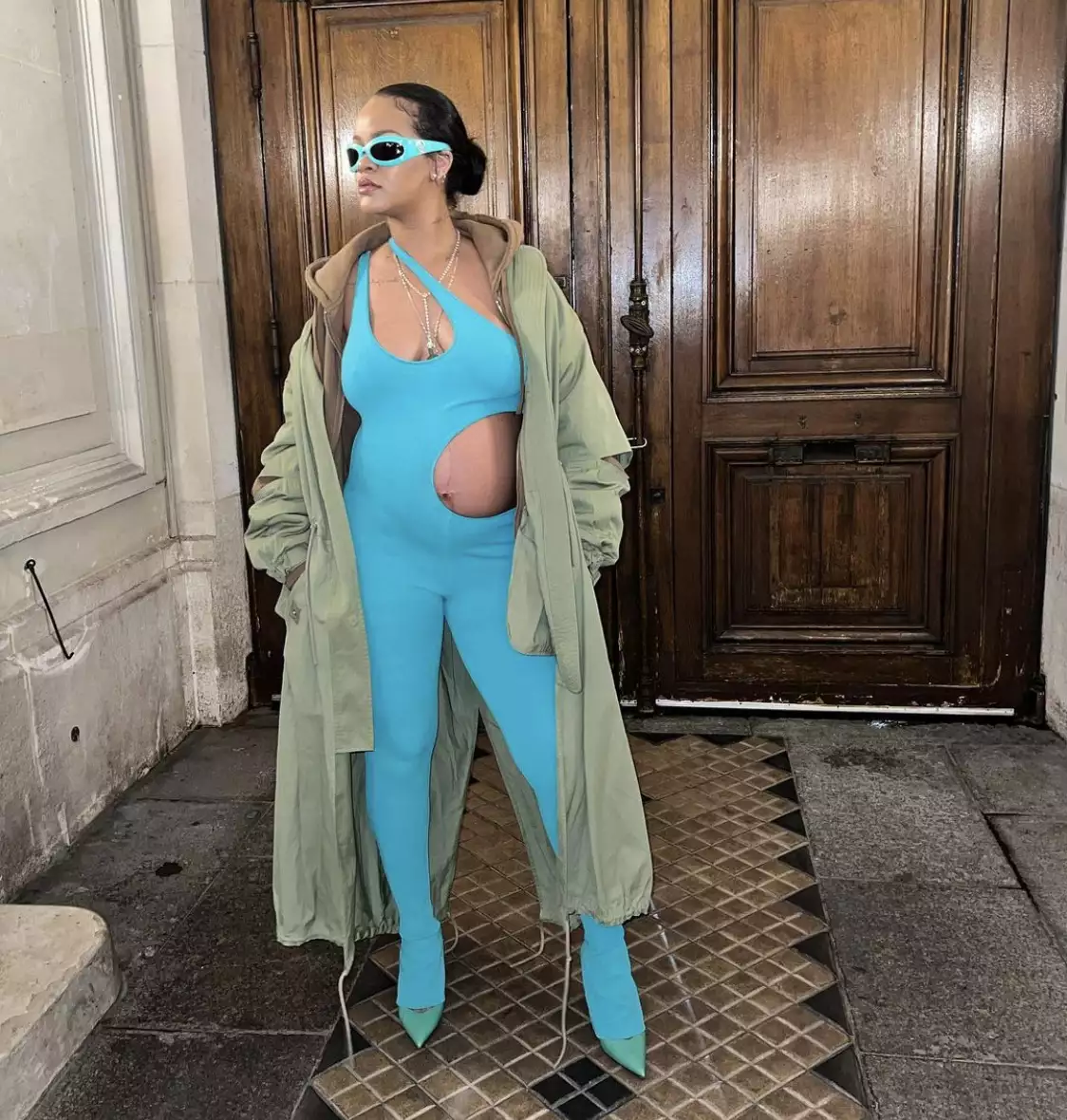 Также Рианна предпочитает носить откровенные наряды, даже находясь на последних месяцах беременности.