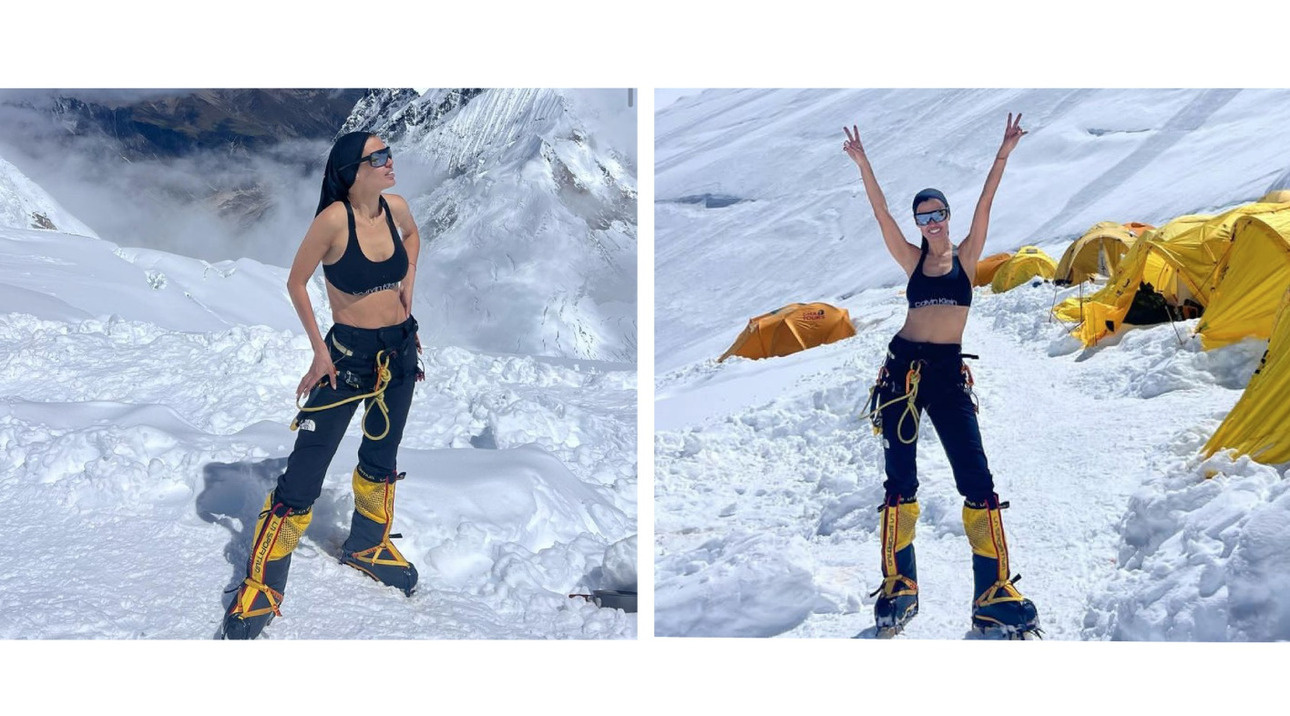 И вот наконец серьезная высота покорена. «Я поставила мой первый рекорд, я дошла до 3-го лагеря — высота 6800», — поделилась Боня своей радостью с поклонниками. В честь этого события светская львица устроила импровизированную фотосессию в одном белье.