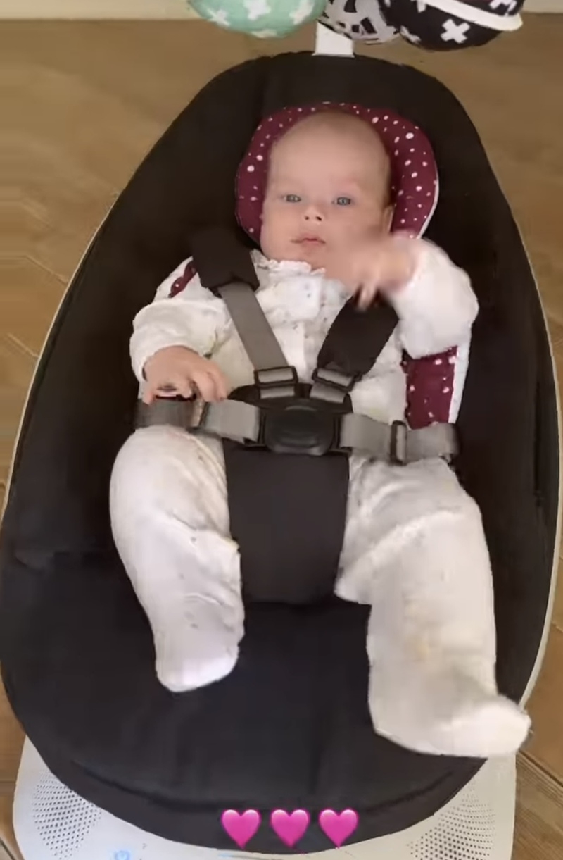 На видео видно, как девочка отдыхает на специальном манеже. Аня с интересом наблюдает за висящими над ней игрушками и съемками мамы. Также Орлова поделилась моментом, на котором запечатлены животные телеведущей.