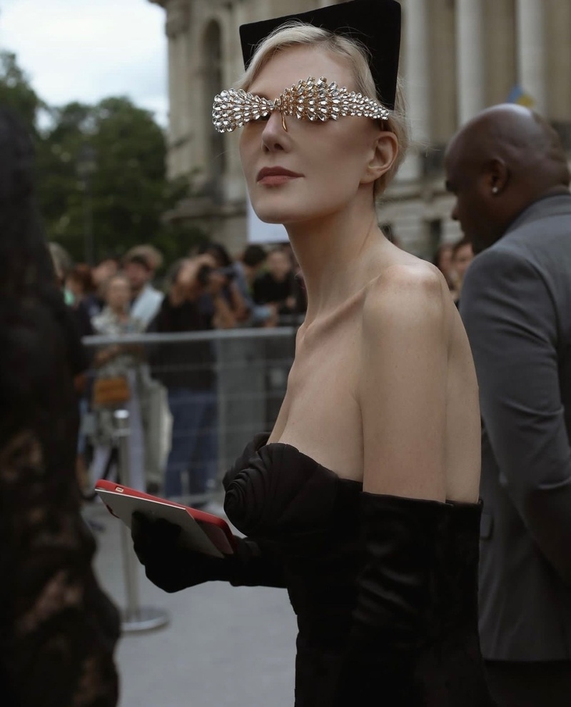 Однако беспорядки, происходящие в Париже, не остановили актрису Ренату Литвинову. Она решила выйти на прогулку в черном платье. Свой образ артистка заключила черными длинными перчатками, лодочками на каблуке и очками, полностью сделанными из драгоценностей.