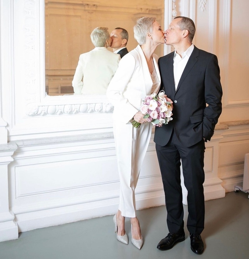 Вот и сейчас звезда выложила архивные снимки с их свадьбы. На фото Дарья позирует в белом брючном костюме, а Андрей одет в черный классический костюм.