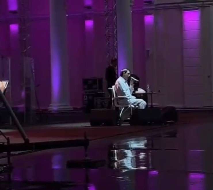 Ivan заснял момент, где Носков исполняет мелодичную песню. Артист сидел на стуле за небольшим столом. Несмотря на плохую погоду, поклонники Николая не уходили из зала.