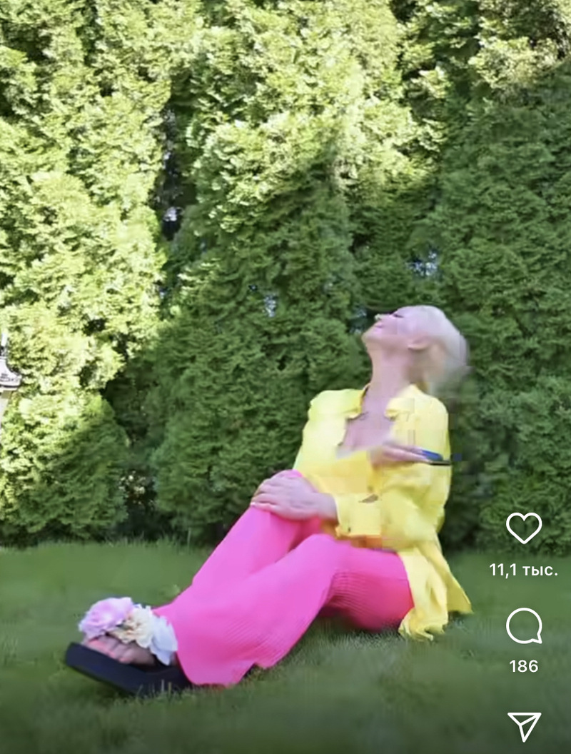 На ролике Волочкова сидит на траве в ярком костюме и в такт музыке трясет волосами. Пользователи Сети уже оценили данное видео.