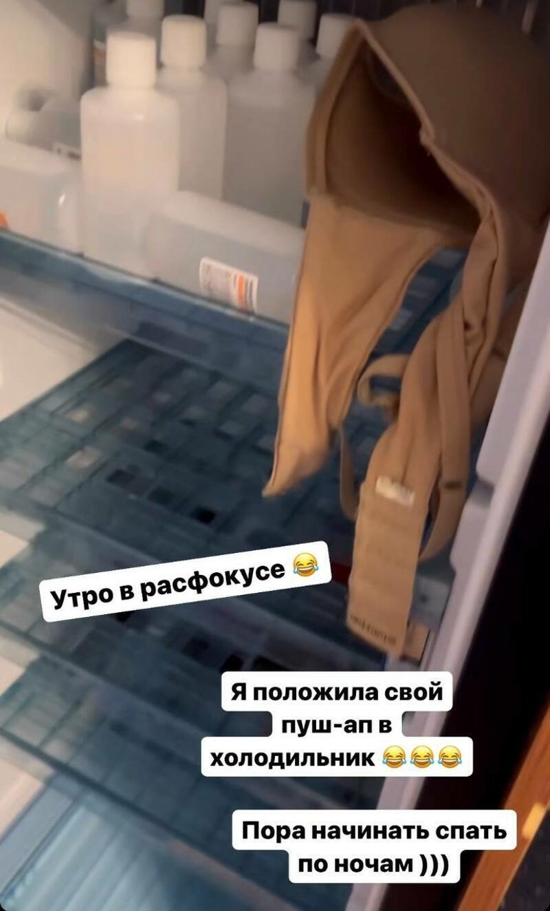 «Ребят, как понять, что я сошла с ума и вообще не выспалась? Я положила лифчик в холодильник. Ну просто я молодец. Концентрация внимания с утра потрясающая», — рассказала звезда.