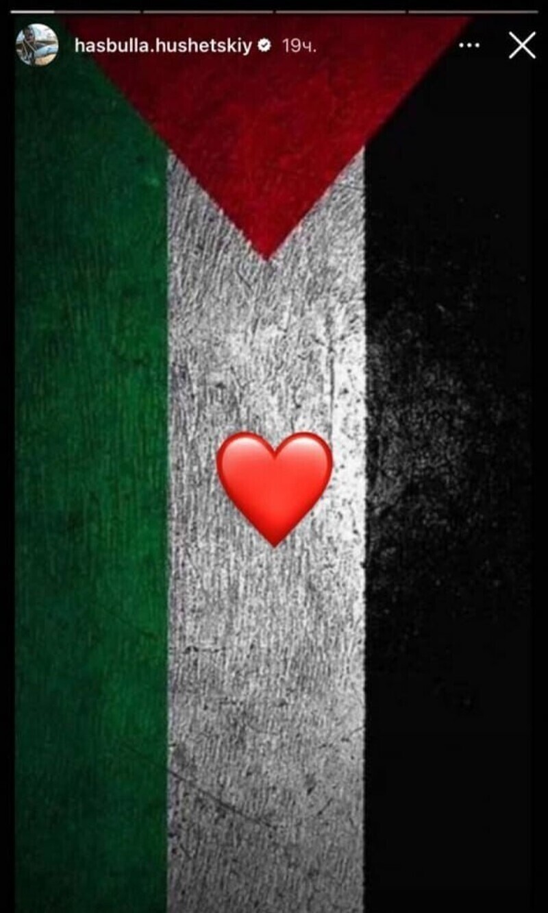 Российский блогер, более известный как Хасбик, также поддержал палестницев. На своей странице в соцсети он опубликовал фото с флагом Палестины и смайликом сердца.