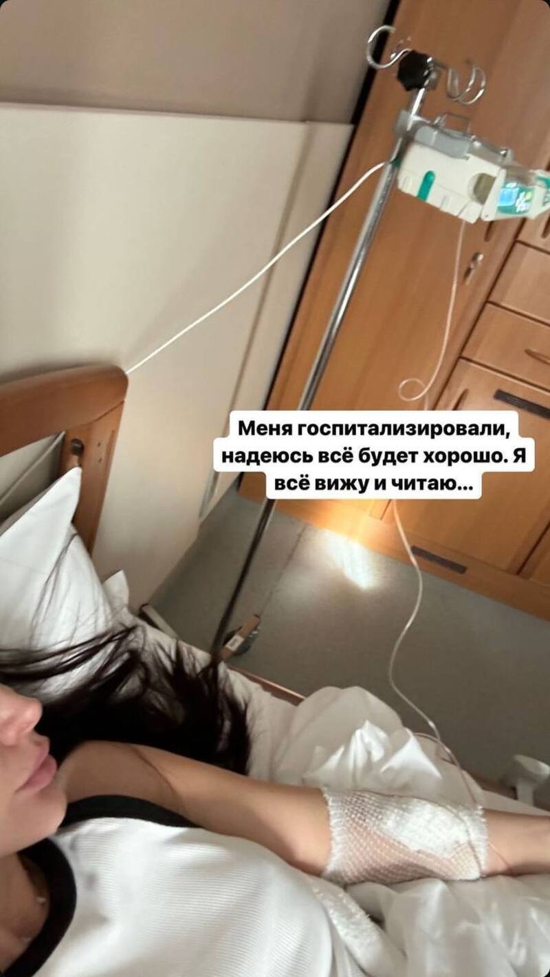 Она поделилась в соцсети фотографией, где лежит на больничной койке под капельницей.