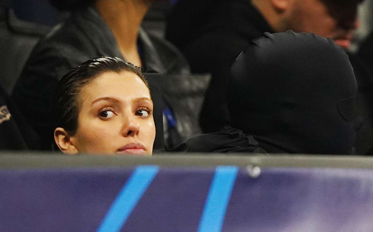 Из-под шубы Цензори виднелись черные лосины. Образ она завершила остросыми туфлями в тон. Канье, по традиции, не изменяет черной мешковатой одежде. Фото можно посмотреть здесь.