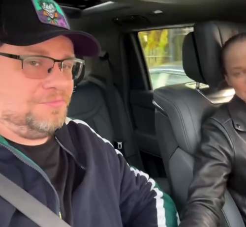 В ролике они едут в машине, а комик напевает строчки: «Любовь нечаянно нагрянет, когда ее совсем не ждешь. Актриса подпевает экс-бойфренду. В конце видео они взялись за руки.