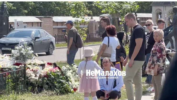 Девочка была одета в розовое платье и белую панаму — лица ребенка на фотографиях не различить. С девочкой разговаривали присутствовавшие там же друзья актрисы, в то время как фигурист смотрел на утопающую в цветах могилу Заворотнюк.