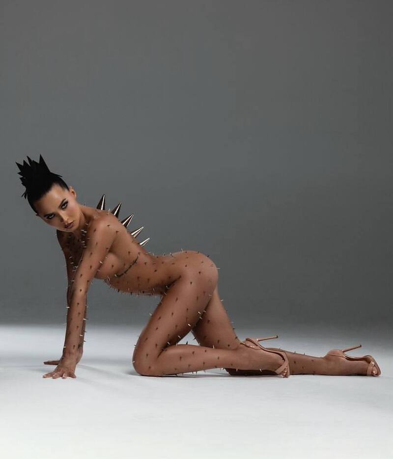 Сегодня Лерчек поделилась снимками с откровенной фотосессии. На кадрах она предстала полностью обнаженной, на коже блогера красовались декоративные шипы. Волосы Чекалиной были собраны в экстравагантную укладку.