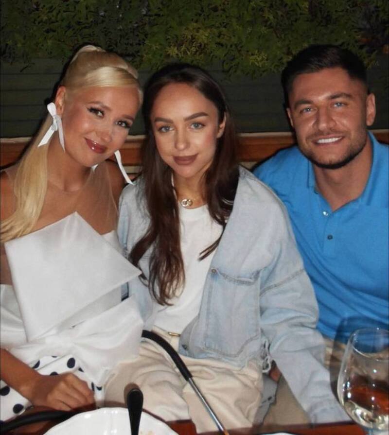 Дава посетил день рождения Клавы Коки в легком кардигане голубого цвета. Именинница предстала на фотографии в эффектном белом наряде с юбкой в горошек. В центре снимка позировала Мари. Краймбрери положила свою руку на коленку Давы.