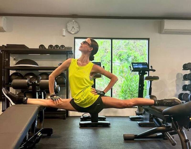 На странице личного блога Мирослава похвасталась идеальной растяжкой. Актриса примерила ярко-желтый топ и короткие шортики. Свой спортивный образ Карпович дополнила маленьким украшением на шею и очками. Знаменитость широко расставила ноги на инвентаре.