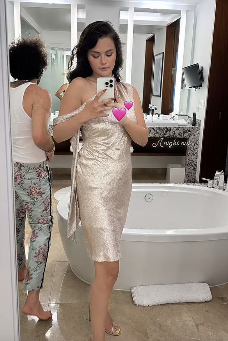 32-летняя актриса выглядела шикарно в платье цвета шампанского на снимке, который она опубликовала в сторис вчера вечером.