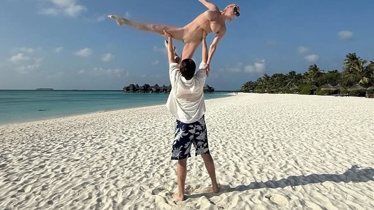 Как и прежде, Анастасия не забывает о традиции: сделала фото со шпагатом, стоя в купальнике телесного цвета, в воздухе, поддерживаемая молодым человеком. «В руках этого мужчины чувствую себя уверенно. Даже на Мальдивах, на прекрасном острове. Решили добавить в него немного творчества. Люблю быть на высоте», — подписала фото артистка.