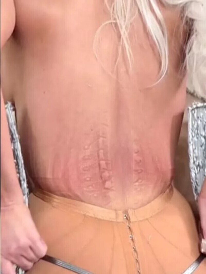 Под платьем был экстремально узкий корсет, который впился в кожу Кардашьян. По словам знаменитости, его ношение доставляло ей невероятную боль. Когда Ким сняла наряд, она показала жуткие следы от корсета: аксессуар оставил глубокие отметины — почти до самого мяса, а кожа Кардашьян сильно покраснела.