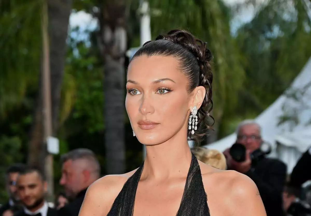 Хадид надела микрошорты, обнажившие ее длинные стройные ноги. На Белле была длинная черный кофта с принтом, колготки и ковбойские сапоги. Волосы модель оставила распущенными, а на лицо нанесла яркий вечерний макияж с акцентом на глаза. Образ дополнили серебряные кольца и серьги. Снимки опубликованы в издании Daily Mail.