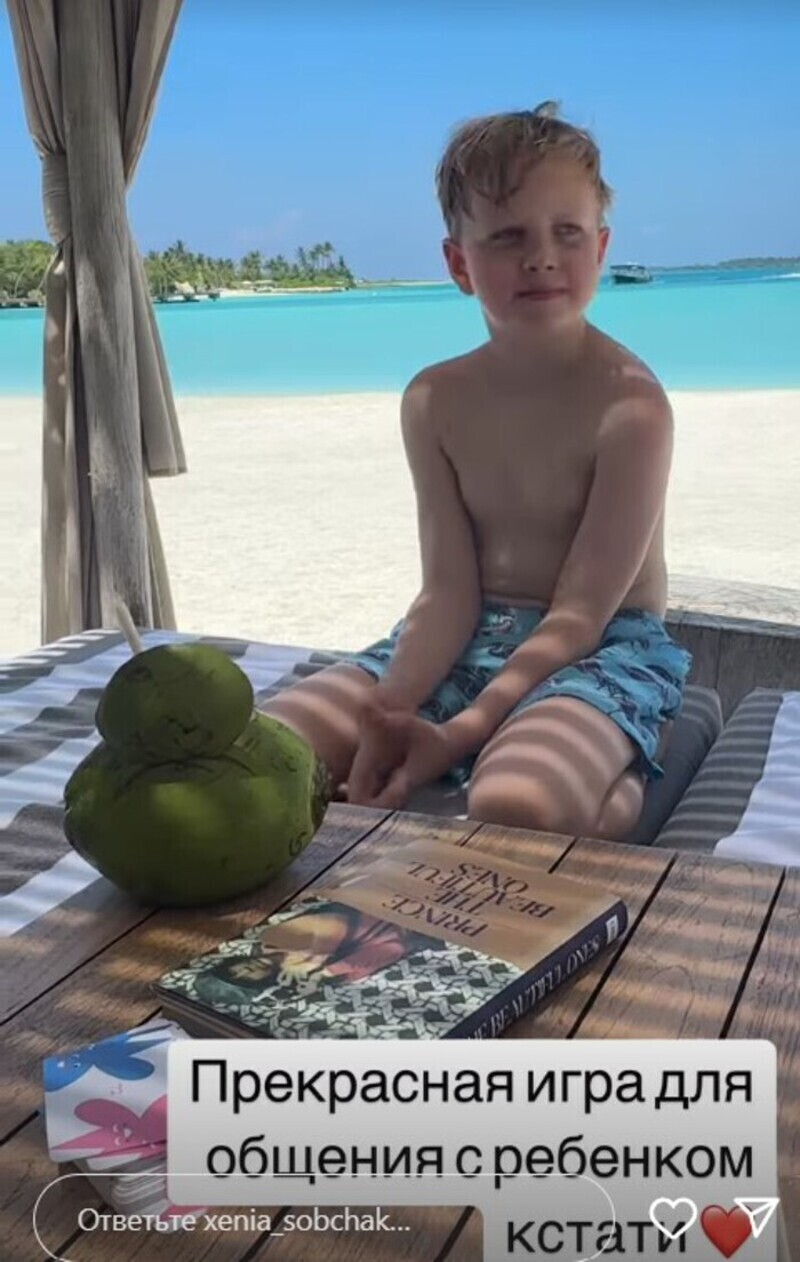 Ксения Собчак вместе с наследником прохлаждается на Мальдивах. Однако журналистка не дает полностью расслабиться ни себе, ни мальчику. Ведущая решила поиграть с сыном в легкие интеллектуальные игры прямо на пляже. Звездная мама спросила у Платона, каким он видит себя через 10 лет, и получила исчерпывающий ответ.