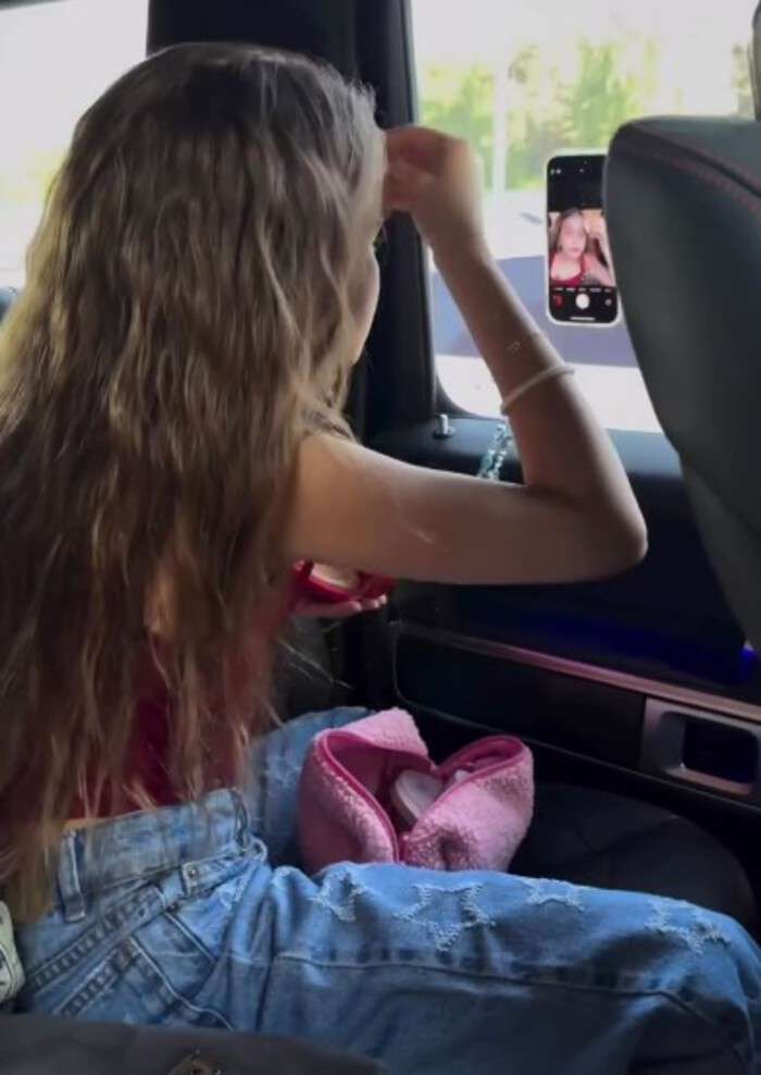 В телеграм-канале Ксения опубликовала короткий ролик с младшей дочкой Теоной. На кадра× 9-летняя девочка умело наносила макияж в машине на ходу, глядя в зеркало на смартфоне. У Теоны, как можно заметить, даже есть персональная косметичка с бьюти-продуктами. «Моя Теюша уже красится лучше, чем я. Кстати, как вы относитесь к тому, что ваши дочки красятся? Разрешаете?» — обратилась Ксения к подписчицам.