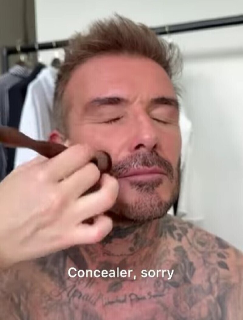 Так, единственная дочь пары Харпер скрасила тоскливые будни мамы и папы, причем скрасила во всех смыслах этого слова. Виктория показала, как девочка наносит мейк на лицо папы. Дэвид смирно сидел на стуле в качестве «подопытной» модели, пока девочка орудовала кистями и карандашами. Бекхэм-младшая наносила тональный крем и румяна, сглаживая несовершенства на коже отца.