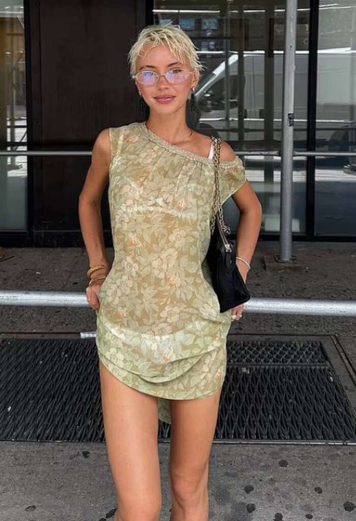 Наследница «молодого папы» позировала в прозрачном зеленом платье, под которым просвечивало белое нижнее белье. На одном из снимков Лоу приподняла подол, оголив стройные ноги. Образ дополнили очки и черная сумка с цепочкой.