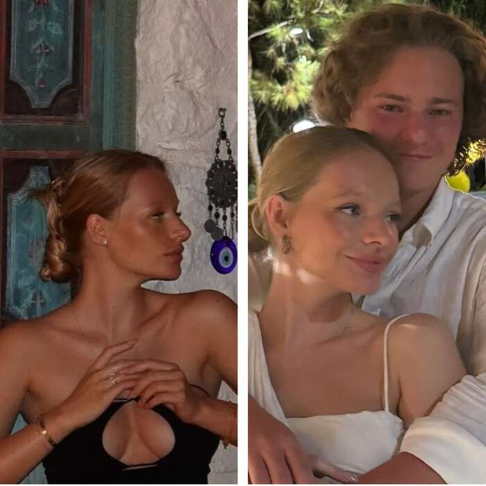 На одном из отпускных снимков Пескова продемонстрировала свою грудь, которую так выгодно подчеркнуло платье с пикантным вырезом. Лиза собрала волосы назад, закрепив их заколкой. На ее лице был вечерний макияж, который выделил скулы знаменитой наследницы.