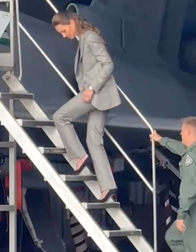 Принцесса Уэльская Кейт Миддлтон поразила поклонников, легко и грациозно спускаясь по узкой лестнице самолета на высоких каблуках во время визита на авиабазу RAF Coningsby, пишет Daily Mail. В свои 43 года она выглядела уверенно и элегантно в темно-синих туфлях-стилетто от Stuart Weitzman, следуя за пилотом на борт истребителя Typhoon.