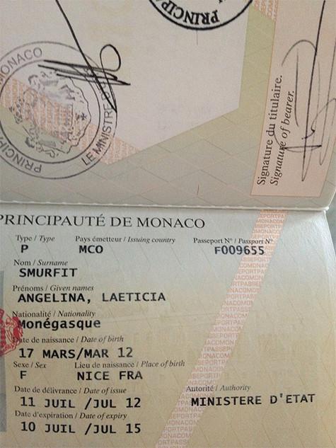«Ну вот, сегодня Анджелина-Летиция стала официально монегаской. Получили паспорт», — написала в своем микроблоге Боня. Чтобы не быть голословной, Виктория опубликовала обложку и разворот паспорта. Судя по снимку, 4-месячная, которая со дня своего рождения живет в Монако, получила фамилию отца — миллиардера Алекса Смурфита.