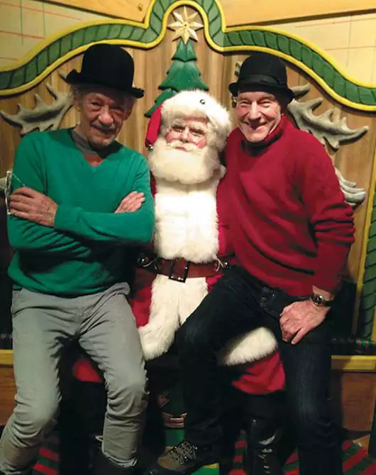 В сентябре этого года Патрик Стюарт стал женатым мужчиной, сочетавшись законным браком со своей возлюбленной Санни Озелл. Однако все свободное время он по-прежнему предпочитает проводить в компании лучшего друга. По крайней мере, такой вывод следует из регулярно публикуемых в Твиттере фотографий актера. И даже накануне Рождества сэр Патрик отправился на прогулку по украшенному Манхэттену с близким товарищем сэром Иэном Маккелленом. Впрочем, позже Стюарт признался, что автором всех этих фотографий выступает как раз его супруга. И она же предложила друзьям сняться на фоне новогодней елки и на коленях у Санта-Клауса. Что актеры попросили у Дедушки Мороза, сэр Патрик не сказал.