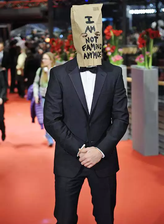 На красную дорожку Берлинского кинофестиваля актер пожаловал с бумажным пакетом на голове. На этом своеобразном головном уборе кинозвезды красовалась надпись «Я больше не знаменит».