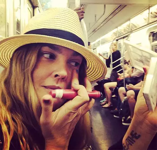 Дрю Бэрримор решила показать, насколько она близка к народу, и спустилась в нью-йоркское метро. И, как многие женщины, в пути актриса решила подправить макияж. На фотографии, которую звезда разместила в своем Instagram, видно, что звезда пользуется консилером. На самом деле оказалось, что поездка на метро — это рекламная акция. Таким образом Дрю продемонстрировала достоинства маскирующего средства для кожи из своей новой линии косметики, которая поступит в продажу в будущем году. Бэрримор вообще часто использует социальные сети в качестве промоушена.