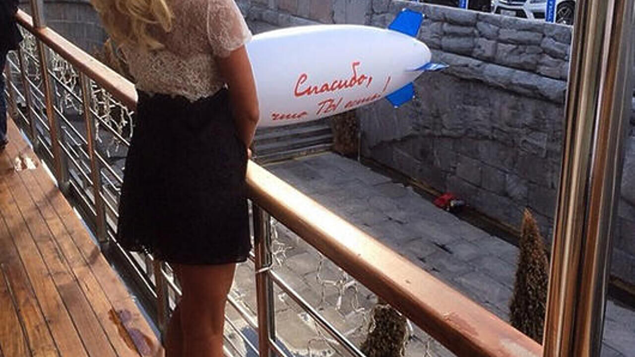 Но Ольга бы не была собой, если бы не приготовила мужу грандиозный сюрприз. Прямо на набережной, перед теплоходом, Тарасова ждал огромный надувной дирижабль, на белом полотнище которого было написано: «Спасибо, что ТЫ есть!»