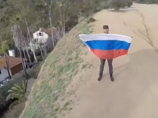 Артист пытался водрузить российский триколор на знаменитую надпись «HOLLYWOOD», когда местная полиция его задержала.