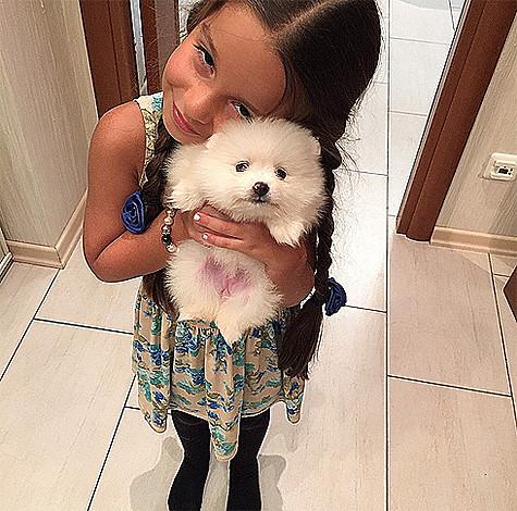 Телеведущая купила своей дочке белоснежного померанского шпица. Средняя стоимость подобного породистого щенка оценивается в 100 тысяч рублей.